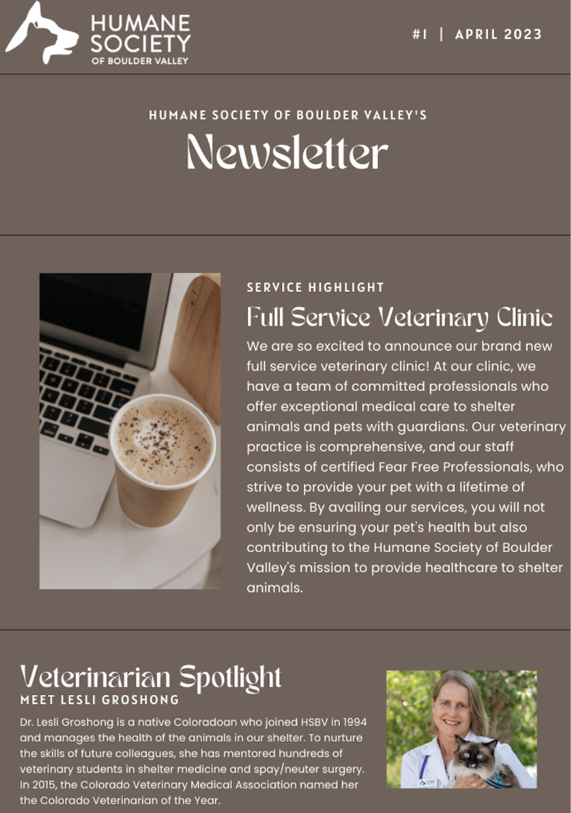 The problem that HSBV is facing is that many community members are unaware of all the incredible resources they offer and only look to them as an adoption center. In order to understand the issue that Boulder Valley Humane Society is facing, we sent out a survey to people in the Boulder community, asking them what they do know about the organization. Through the results of the survey (listed on page 16), we concluded that many community members were not aware of the services the HSBV offered yet; many were interested in learning more about the organization and all of its resources. This geared our PR campaign to focus on building brand awareness. Through this campaign, we hope to educate more people about all the incredible services HSBV provides besides its adoption center.